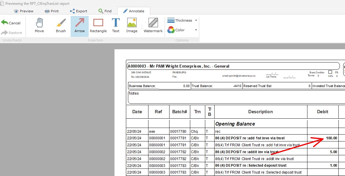 - Annotated Statement Sharing: Email annotated transaction copies instantly for efficient client communication.